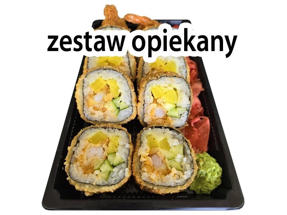 -ryż, krewetka w tempurze i panko, ogórek, rzepa, chili majo, tempura, panko